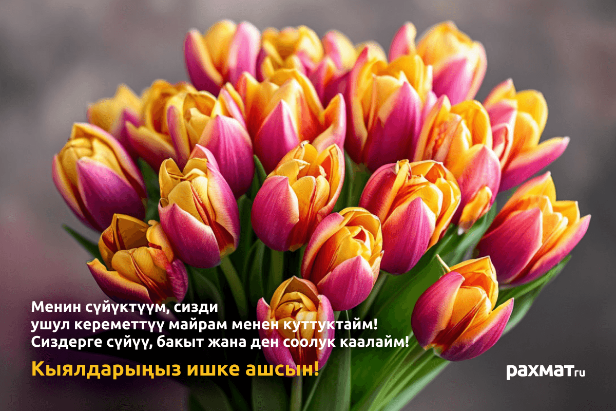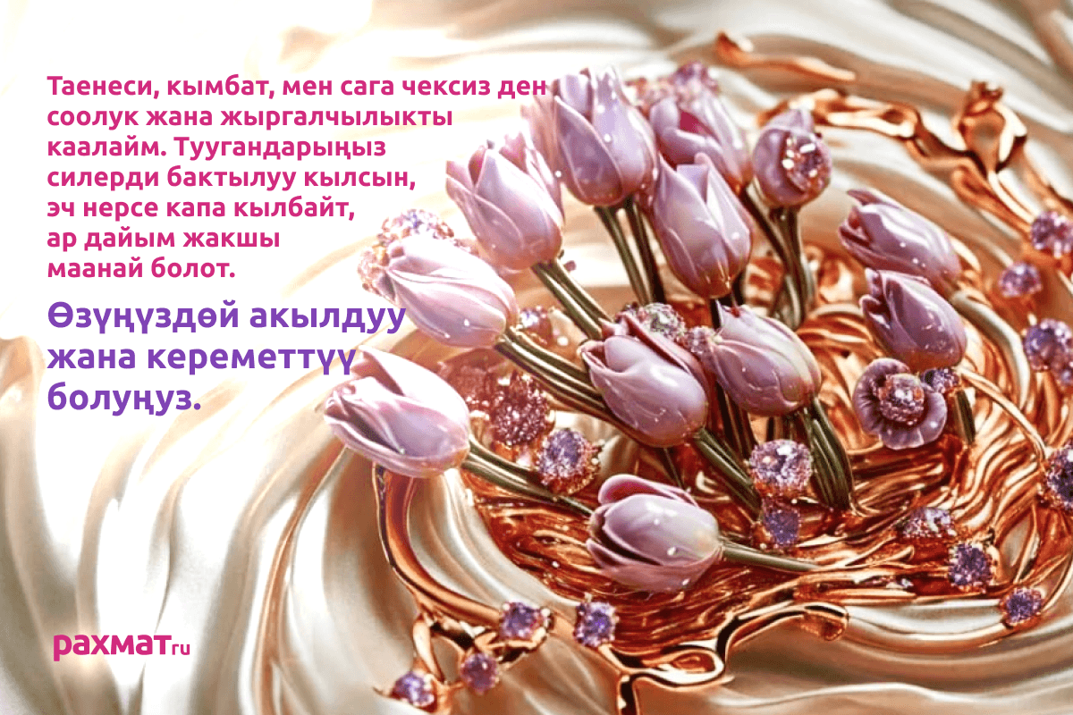 Открытки на 8 Марта на киргизском: тёплые поздравления для самых близких
